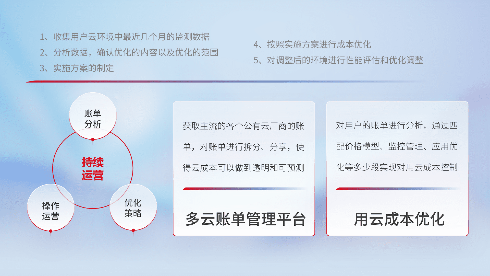 监控业务系统资源开销,,,对资源的消耗精确计量,,,,实现费用的透明化管理,,,,不断提升资源使用率,,调整资源购买方式,,,降低资源费用成本,,用云成本可预测、、用云费用可优化,,云资源配额有据可依。。